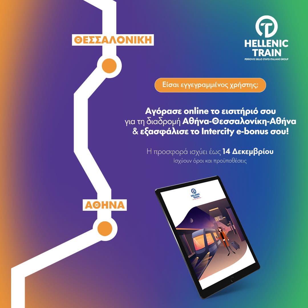 Αθήνα, 25 Νοεμβρίου 2025 – Η Hellenic Train ανακοινώνει νέα προσφορά για το επιβατικό κοινό που ταξιδεύει στη γραμμή Αθήνα – Θεσσαλονίκη – Αθήνα, επιβραβεύοντας όσους επιλέγουν τα ψηφιακά κανάλια της εταιρείας για την αγορά των εισιτηρίων τους.